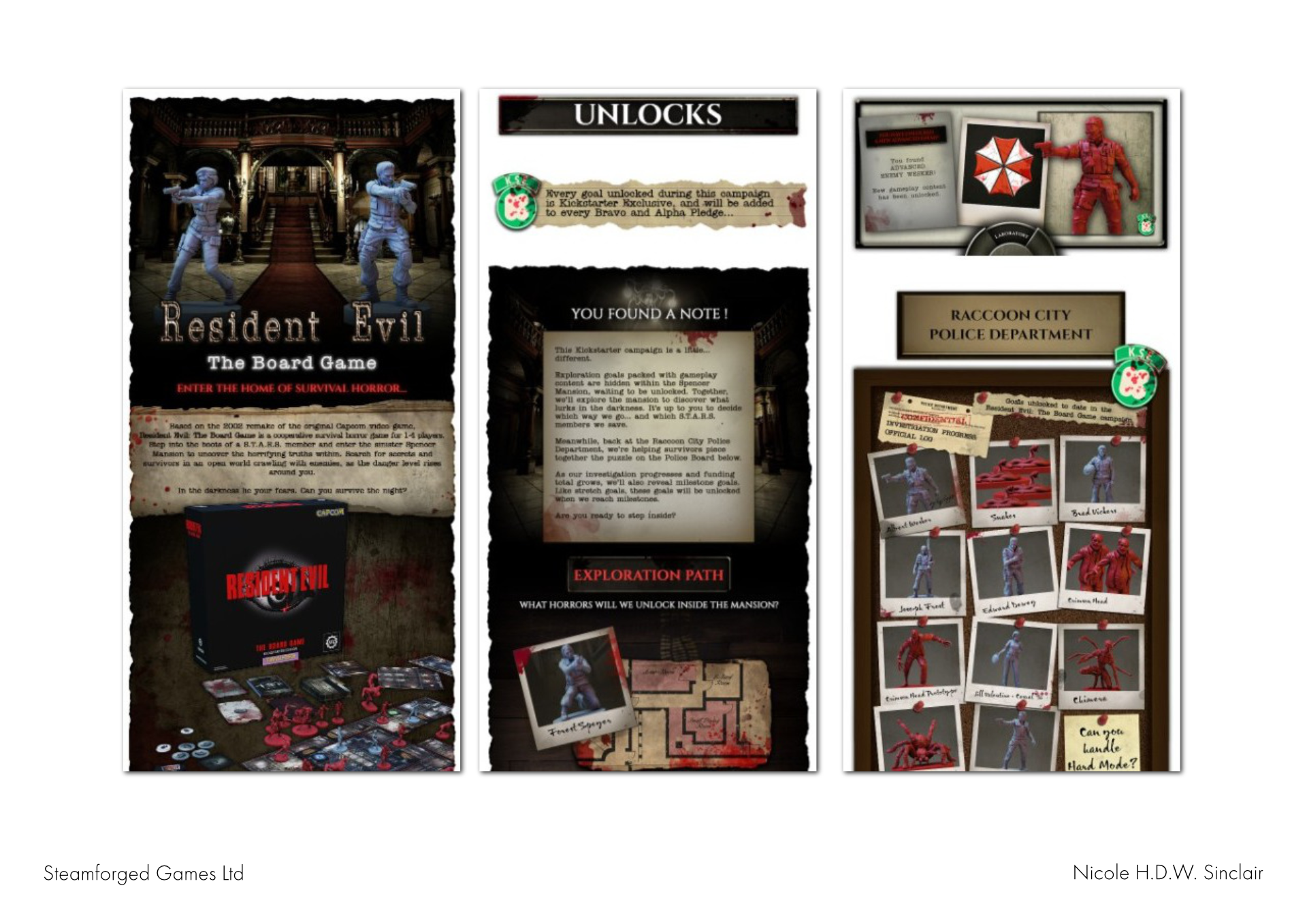Examples from my work on the Kickstarter campaign page Resident Evil: The Board Game.